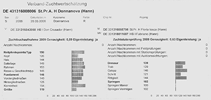 Stutenleistungsprüfung in Osterode ein herausragendes Prüfungsergebnis von 8,54 im Dressurindex. Dies war das beste Prüfungsergebnis im gesamten Bezirksverband. Donnanova konnte damit den tollen Erfolg ihrer Mutter (2001) und ihrer Schwester StPr Wakanova (2007) wiederholen. Anlässlich der JHV des PZV Braunschweig wurden ihre Züchter dafür mit einem Ehrenpreis ausgezeichnet. |
