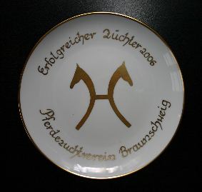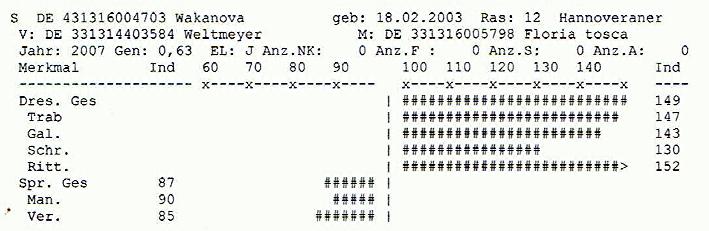 Prüfungsergebnis von 8,75 im Dressurindex. Dies war das beste Prüfungsergebnis im gesamten Bezirksverband. Wakanova konnte damit dem tollen Erfolg ihrer Mutter aus dem Jahre 2001 wiederholen. Anlässlich der JHV des PZV Braunschweig wurden ihre Züchter dafür mit einem Ehrenpreis ausgezeichnet. |
