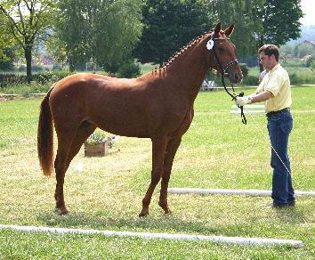 Stuten. In ihrer Stutenleistungsprüfung dominierte sie über alle anderen Mitbewerberinnen mit einem Dressurindex von 8,75. Bei der Stutenschau in Königslutter wurde sie Staatsprämienanwärterin und "Beste Stute der Schau". Am 23. Juni 2006 landet sie in Los Angeles, USA, um in der "Neuen Welt" ihre so glanzvoll begonnene Karriere fortzusetzen. |